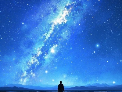 25-30秒提示词:星空下的海岸,人体轮廓化作星尘与银河交融,深空蓝+银白星云。