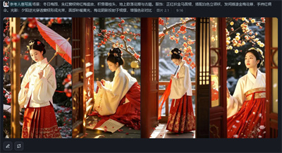 高阶技巧 :要求AI按“季节系列”生成,比如《烟雨江南》《雪梅映红》,提升账号垂直度。