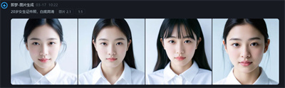 打开即梦,输入图片生成指令“24岁女生证件照,白底高清”,生成基础脸模,选择一张自己觉得满意的图片下载。