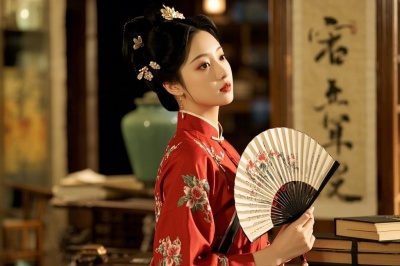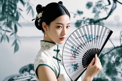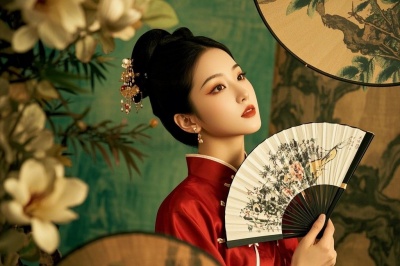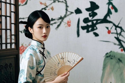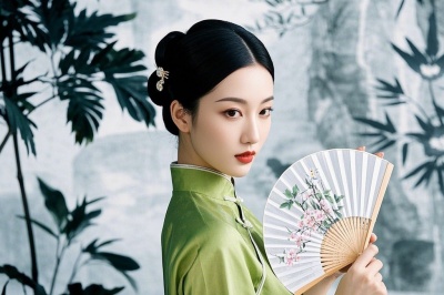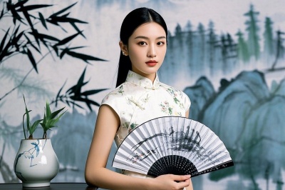 视觉锤 :唐装+折扇+AI水墨背景(即梦AI的国画2.1Pro模型)。