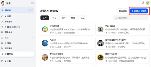 一、打开豆包,找到左侧栏的AI智能体点击进去,然后点击【创建AI智能体】。