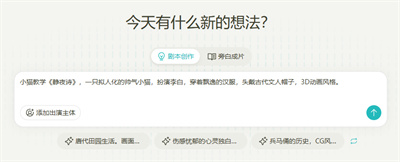 如果不知道做什么,可以选择输入框下面的创意进行生成。